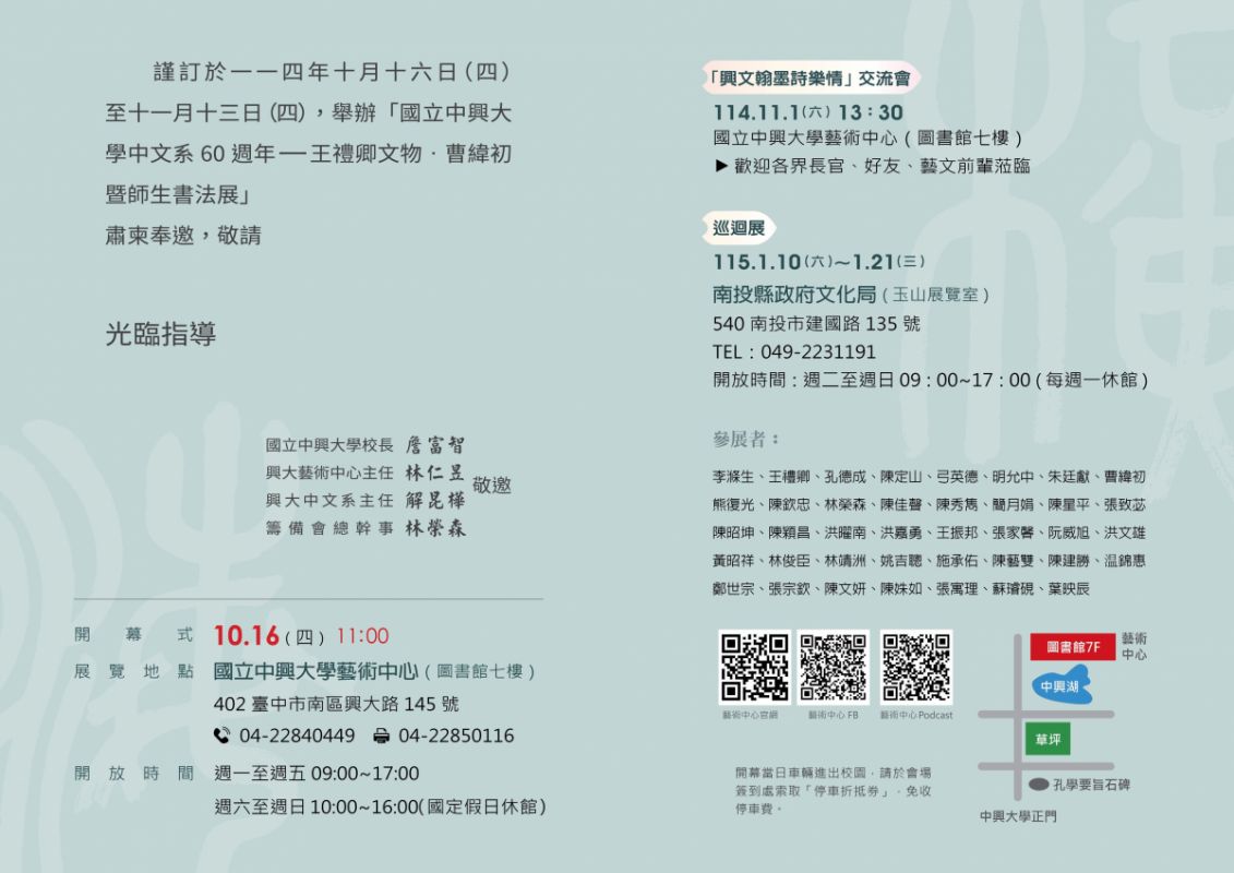 國立中興大學中文系60週年ー王禮卿文物・曹緯初暨師生書法展