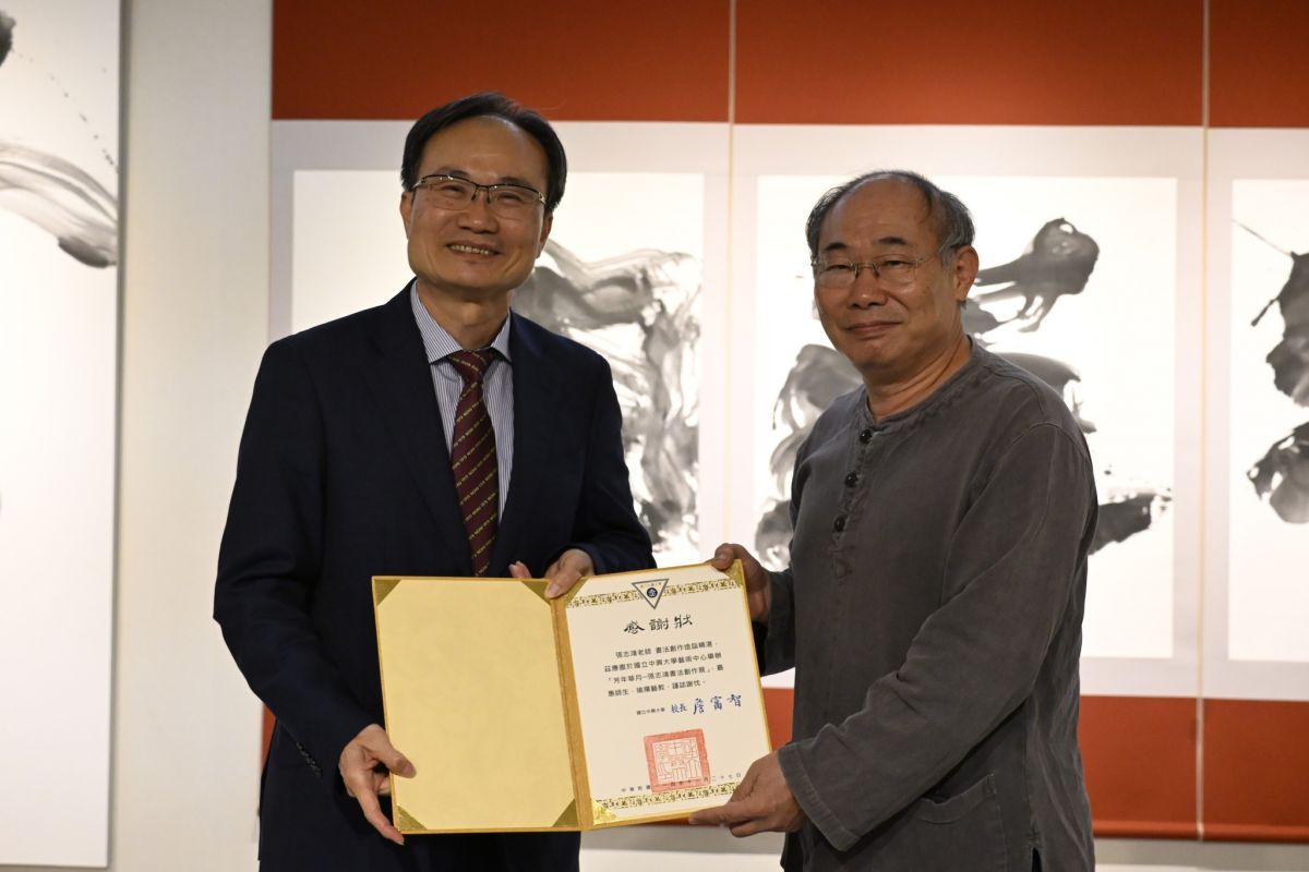 感謝中興大學蔡清標副校長、臺中市政府文化局曾能汀副局長、環境部前部長/中興大學前校長薛富盛教授、行政院前文建會洪慶峰副主委、中華民國博物館學會陳國寧副理事長、中興大學李長晏主秘、佶鑫琺瑯公司王義順總經理的蒞臨致詞,以及藝術中心前主任陳欽忠教授、書法家柳炎辰老師、姚吉聰老師、張家馨校長、趙爽妙老師,水墨畫家袁之靜老師、膠彩畫家趙純妙老師、賴楚穎老師,以及眾多藝術先進、書法愛好者出席同慶。