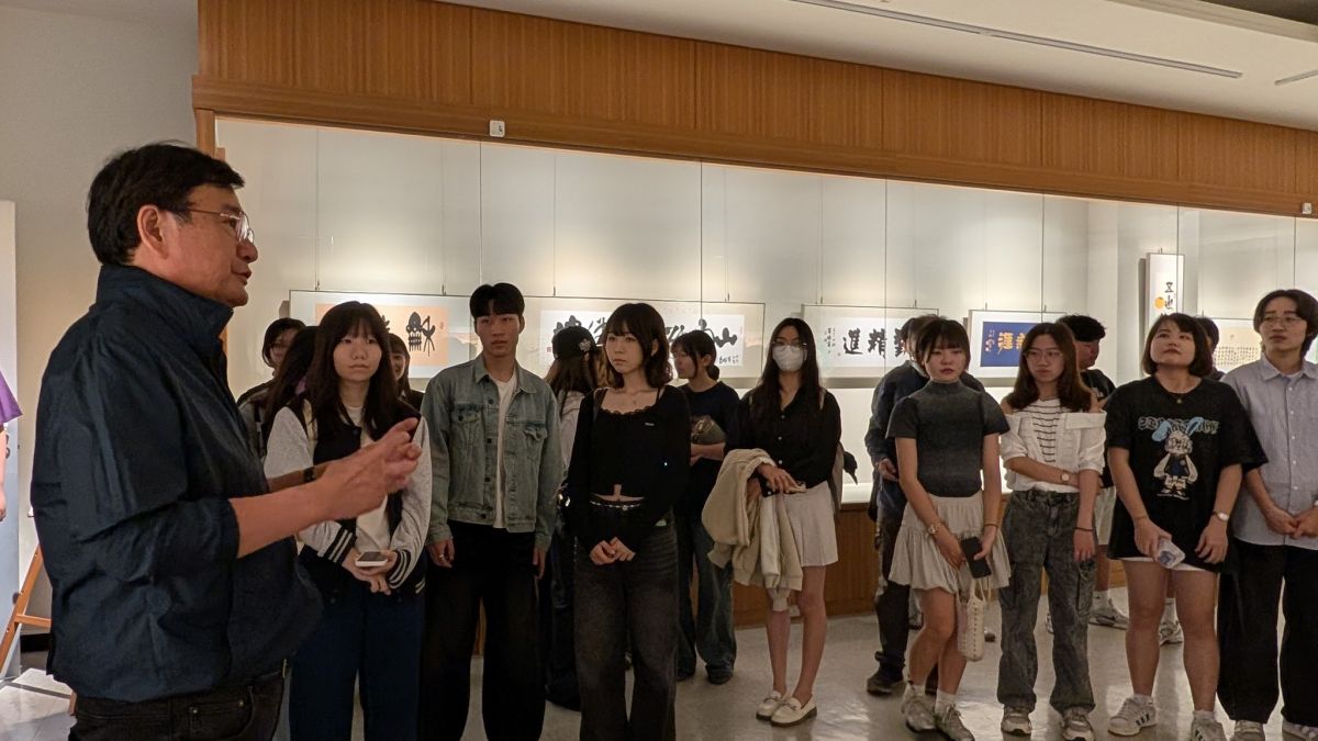 展覽期間感謝中文系丘彥遂老師、林榮森老師帶領大一國文及書法課程學生參與,招生組偕同后綜高中社會組學生班級參觀,寓教於樂,也讓學生從展品中感受藝術與文學;也謝謝藝術家林章湖、程代勒、廖仁義、施永華、莊連東、莊連棚、莊明中、白滄沂、濡墨書會等老師們,忠明高中賴東昇校長伉儷,柯興樹、吳正邦、吳春山、曾錦煌、陳蓀裕與層峰學院等傑出的校友們,當然,有眾多喜歡藝文的親友們蒞臨,讓展場充滿喜悅~